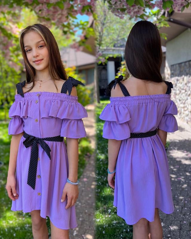 Хорошее платье Тканина: креп-жатка !!!! НЕ СОФТ! Невероятно эффектная Под поясок,та есть пуговицы по всей длине платья Размеры 128см 2шт 134см 2шт 140см 1шт 146см 2шт 152см 2шт Цена: 550грн Замеры: +- 2см допустимая погрешность длина/ширина/ по спинке все платья +10см! 128 - 55/30 134 - 58/31 140 - 61/32 146 - 64/33 152 - 67/34