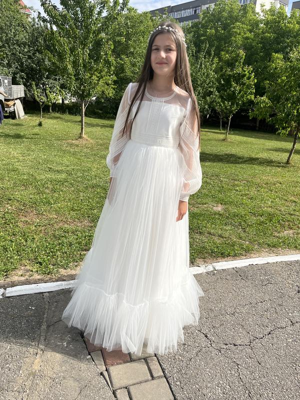 Плаття індивідуального пошиву з якісної тканини. Одягали один раз на причастя. Слідів носки нема
