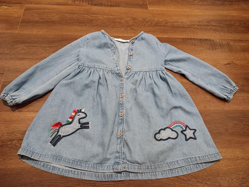 Детское джинсовое платье с вышивкой M&S, б/у в хорошем состоянии Длина от плеча - 54 см Ширина - 31 см Рукав - 34 см
