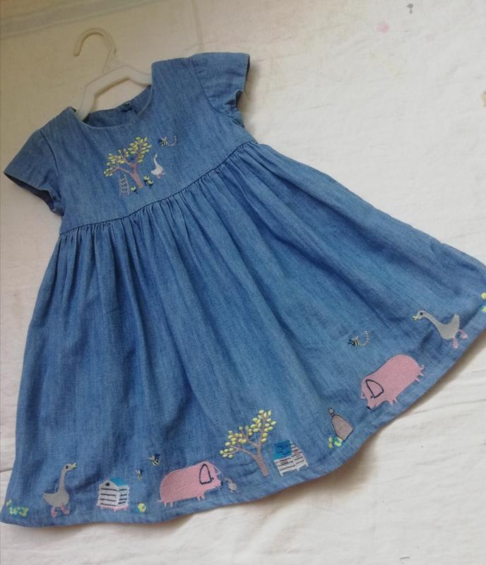 Джинсовое летнее платье на девочку 18-24месяца. Рост 90 см. Длина по спине 47 см пог 28 см. Пла
