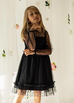 ✨ Стильна дитяча сукня в чорному кольорі✨ 💖 Вишукана та елегантна модель для маленьких модниць, які люблять бути в центрі уваги. Ідеальний вибір як для святкових подій, так і для стильних буднів. 🧵 Матеріали: ✔️ Турецька костюмна тканина + фатин у горох (5 мм) ✔️ Акуратна прошивка горловини та плечей ✔️ Потайна змійка на спинці 📏 Розміри: 🔹 116 – довжина 65 см, спідниця 38 см, рукав 44 см, груди 28,5 см 🔹 122 – довжина 71 см, спідниця 42 см, рукав 45,5 см, груди 30,5 см 🔹 128 – довжина 74 см, спідниця 44 см, рукав 48 см, груди 32 см 🔹 134 – довжина 76 см, спідниця 45,5 см, рукав 51 см, груди 34 см 🔹 140 – довжина 79 см, спідниця 48 см, рукав 53 см, груди 36 см