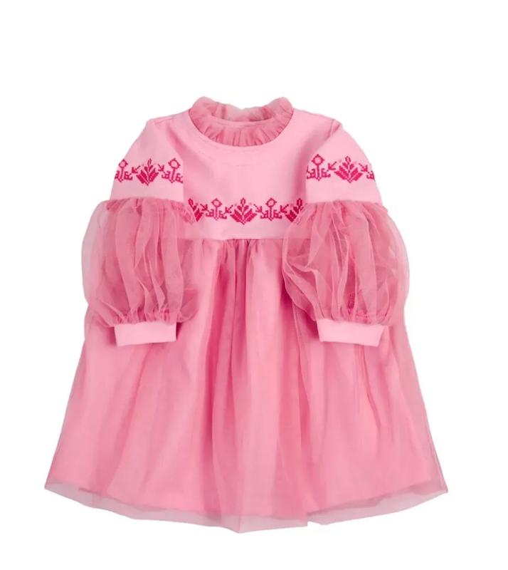 сукня вишиванка святкова з фатіном 80-116 з довгим рукавом на кнопках мод.ліо