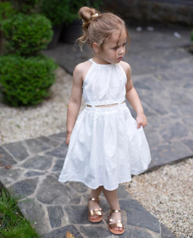 Сукня для дівчинки з відкритою спинкою, тканина бавовна 100% та прошва. Завʼязками можна регулювати довжину, тому один розмір може слугувати довго. Заміри даю, відправка швидка