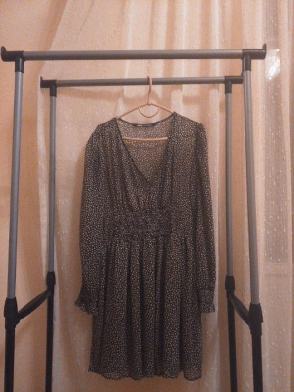 Легенька шифонова сукня,в дрібний білий горошок,з пишними рукавами, буфами, свобідного крою, розпродаж