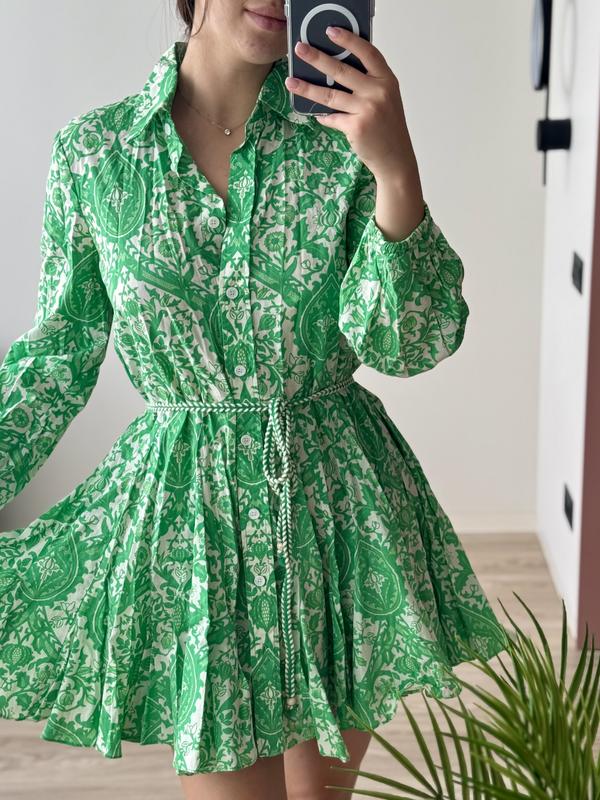 Літня, легка, яскрава сукня. Має усі ґудзики, не має заціпок, в ідеальному стані. Пояс також в ідеальному стані. Дуже гарно дівчатам зі світлим волоссям