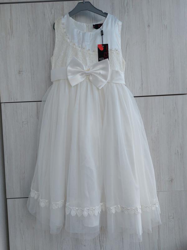 Брендова вишукана святкова сукня сукня для першого причастя Сукня нова, в користуванні не була (відповідає вказаному на фото) На найнижчому під'юбнику при зберіганні утворилися плямки, вказано на фото, ці плямки видно лише коли вивернути сукню Купували за 150₴, ціна в оголошенні вказана символічна
