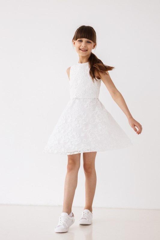Модель відрізна по лінії талії. Рукавів нема. Спідниця розширена донизу, на підкладці. Додатковою прикрасою є вузький атласний пояс. Спинка має V-подібний виріз. Застібається на гудзик і тасьму-блискавку, розташовану в середньому шві спинки. Довжина вище за коліно. Розмір 134 д.в 68, пройма 32, талія 29 140 д.в 72, пройма 34, талія 30 146 д.в 75, проймв 36, талія 31