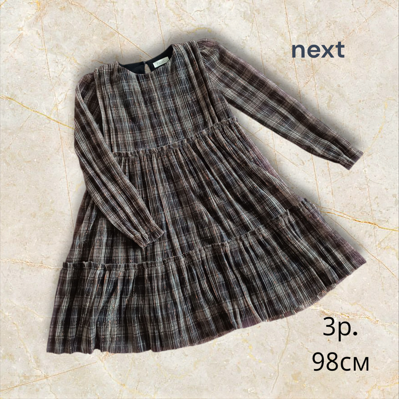 Дуже класна сукня Next на 3 рочки (98см) Підкладка котонова , зверху дуже красива тканина , рукавчик прозорий . В ідеальному стані. Заміри на фото.