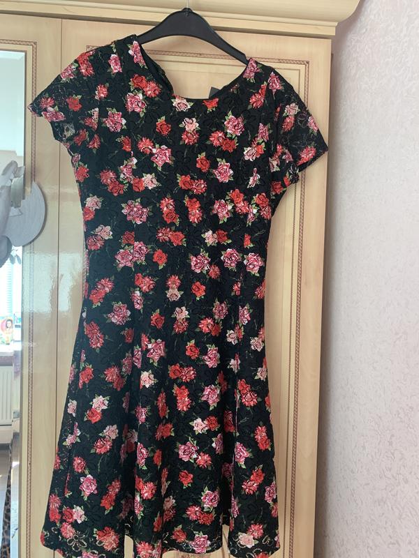 Коротка сукня з квітами,ззаду на пувичці застібочка.