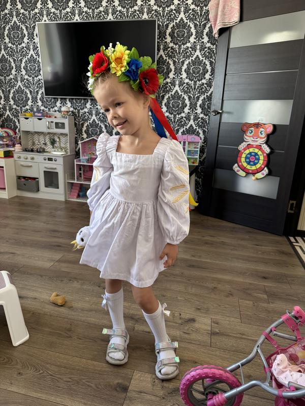 Легенька сукня з вишитими рукавами . Позаду на замочку ,на плечах резинки .