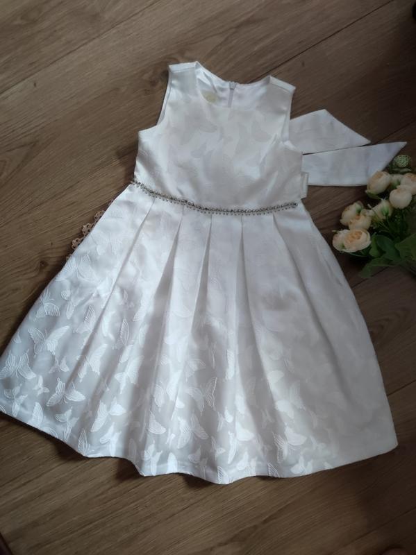 Нежное и милое платье на праздник для девочек, которые любят красивые вещи из атласной ткани.На спине застегивается на молнию и бант, спереди украшение из камушков. Подкладка из полиэстера и эвросетки придает платью пышность. Производство Филиппины. Длина от плеча 66см, ПОГ 30см.