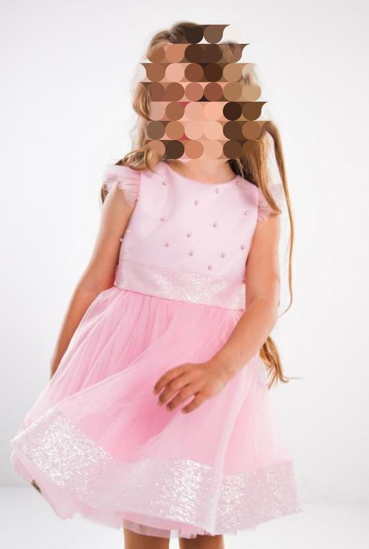 Святкове розкішне плаття для справжніх принцес: верх прикрашений сіткою з перлинами, спідниця - фатином, що створює пишність платтячка. На талії яскравий акцент у вигляді блискучого пояса, така ж тканина по низу спіднички. Оригінальна спинка з вирізом у вигляді серця, пояс ззаду зав’язується на бант із фатину. Ніжні крильця на плечах. Сукня на м’якій підкладці, тому дівчинці буде приємно перебувати в сукні тривалий час. Розміри: 104 Склад: 100% поліестер; підкладка: 70% поліестер, 30% віскоза. Виміри: 104 - довжина 56см, ширина 29см