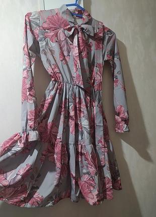 Ніжна та елегантна сукня для дівчинки на зріст 146-150, але можно і на менший зріст, на талії резинка і пояс, тому все регулюється. На шиї теж зав'язується, на бант. Сукня одягалася один раз на свято, стан нової. Довжина 84 см Рукав від плеча 54 см Ширина по лінії ОГ 41 см