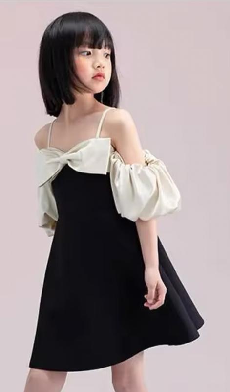Сукня з бантом . Приємний матеріал . Ідеально на зріст 134. Колір чорний і молочний . Одягли 1 раз на фотосесію .