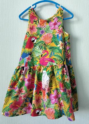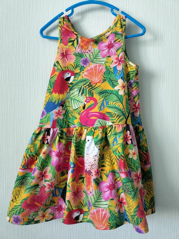 В ідеальному стані яскрава, літня сукня на дівчинку 2-4роки. Довжина від плеча до низу 50см, ширина під пахвами 25см, ширина по бедрам 31см.