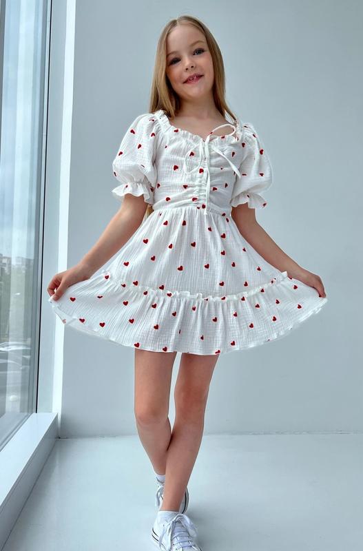 через кнопку купити тільки повна оплата!!! Стильна муслінова сукня для дівчат Спинка зібрана під резиночки, тянеться. Пояс на резинці. Тканина - муслін (Туреччина). Заміри: 152 довжина від плеча - 71см, напівобхват грудей - 37см. 158 довжина від плеча - 74см, напівобхват грудей - 38см. 164 довжина від плеча - 76см, напівобхват грудей - 39см. 170 довжина від плеча - 80см, напівобхват грудей - 40см. Мс
