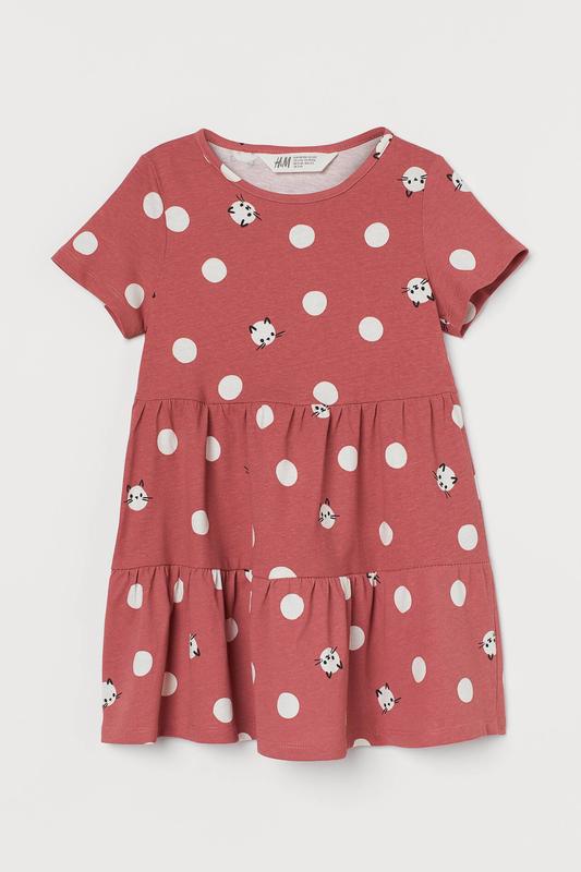 Детское платье на девочку. Платье с коротким рукавом из мягкого хлопкового трикотажа с принтом. Отрезное по сборке на талии и расклешенной юбкой. H&M р.122-128 - 6-8 лет