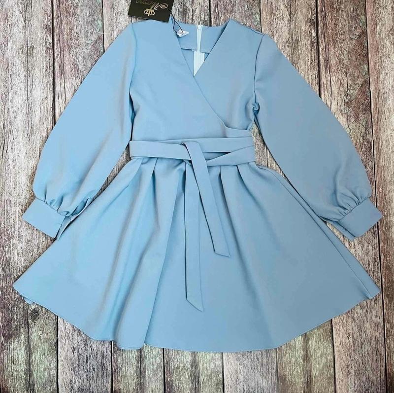 через кнопку купити тільки повна оплата!!! Стильна сукня для модниць По спинці до пояса застібається на блискавку. Спереду на запах. Пояск в комплекті. Тканина- костюмна. Заміри: 140 довжина - 69см, рукав від плеча - 52см, напівобхват грудей - 38см 146 довжина - 75см, рукав від плеча - 54см, напівобхват грудей - 39см 158 довжина - 83см, рукав ід плеча - 58см, напівобхват грудей - 44см 164 довжина - 87см, рукав ід плеча - 63см, напівобхват грудей - 45см Мс