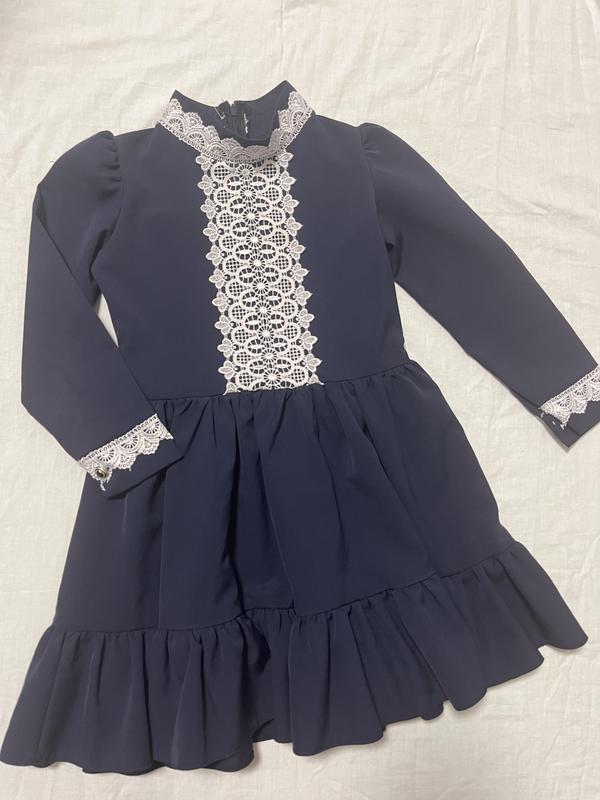 Гарний шкільний сарафан для дівчинки на зріст 116 сантиметрів. В ідеальному стані, носили дуже мало. Якісна тканина, гарно виглядає на дитині Довжина сукні 67см,рукав від плеча 43см Підійди на 6-8 років