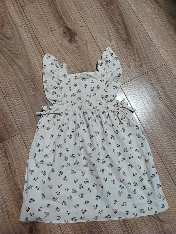 Размер 3-4 года, рост до 104 см с рукавами крылья, сзади на деревянных пуговицах состояние идеально очень красивая, легкая и удобная материал хлопок Длина платья - 53 см