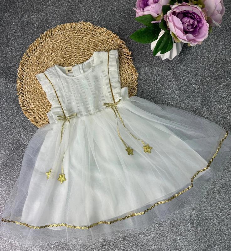 Невероятно стильное и нарядное платье 🔥 Снизу на хлопковой подкладке Украшена золотой вышивкой и звездочками Очень красиво сидит на ребенке Хорошее качество!Рекомендую ✅нс 90 - длина 50 см, ширина 25 см(3 шт) 100- длина 54 см, ширина 26 см(3 шт) 110- длина 59 см, ширина 28 см (3 шт) 120- длина 62 см, шир 29 см(3 шт) 130- длина 68 см, ширина 31 см(4 шт) 140- длина 74 см, ширина 33 см(4 шт)