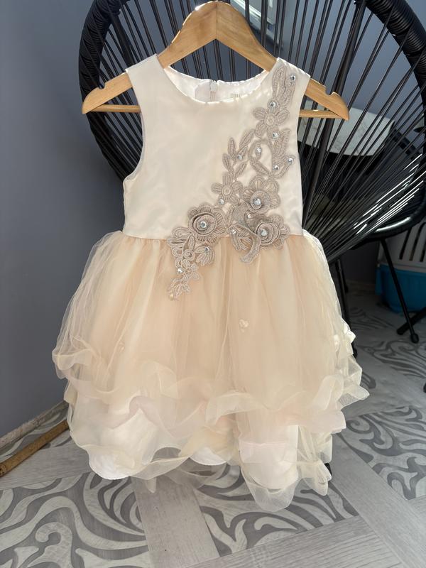 Святкова сукня на дівчинку розмір 110см на 4-5 років, зі шлейфом , юбка фатин пишна, бежевого кольору.