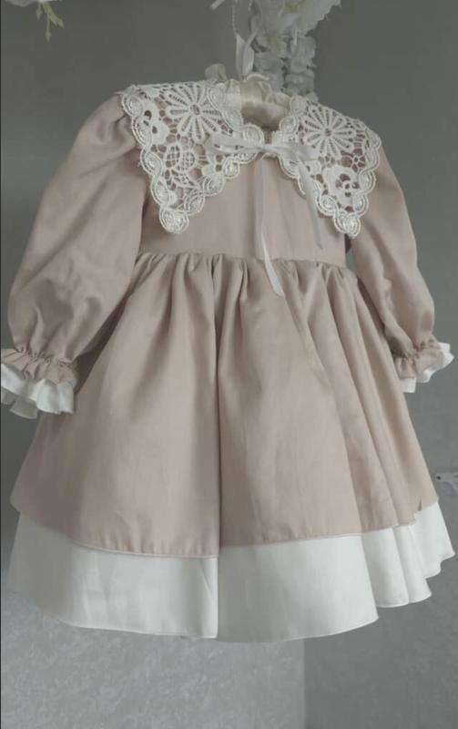 Продається сатинова сукня, комір як на фото ( знімається), бант зйомний на спинці, є фатин для пишності. Підходить на: Зріст 75-77 Об грудей 48-50 Об животика 51-52 Довжина сукні від плеча до бажаного закінчення 52. Але є трішки запасного місяця. Одягали 1 раз, стан ідеальний.