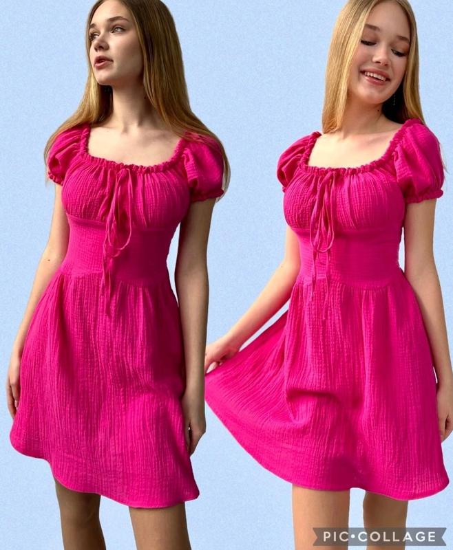 через кнопку купити тільки повна оплата!!! Легенька стильна сукня для дівчат Зав'язка декоративна. Тканина - муслін. Заміри: 158 довжина - 69см, напівобхват грудей - 39см. Мс