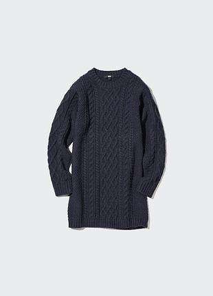 Тепла, стильна, якісна вʼязана сукня на дівчинку. Красиве акуратне плетіння, зручний фасон, натуральний склад. Колір темно-синій. Донька вдягала кілька разів. Швидко виросла. Без дефектів. Стан відмінний. Розмір вказано 7-8 років. Довжина 71,5см Рукав 43см Ширина 37см. Завдяки плетінню сукня трохи тягнеться в ширину, але не в довжину.