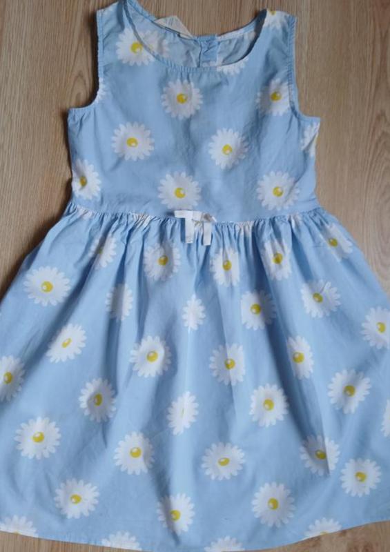 Блакитна сукня в ромашки, коттон, підійде для дівчинки віком 5-7 років. Довжина 66 см, пвобхватпід пахвами 32 см.