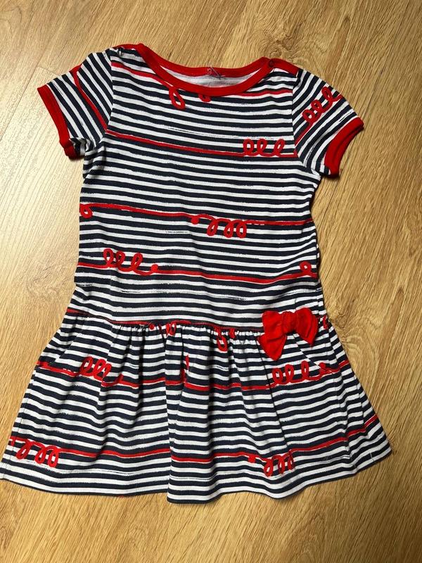Класне літнє плаття в чорно-білу смужку з червоними акцентами та бантиком. Зручний крій зі спідничкою, м’яка тканина, приємна до тіла. Ідеально для прогулянок, садочка чи фотосесій 🌞 🧼 Чисте та охайне, без сторонніх запахів. 📦 Відправляю швидко!