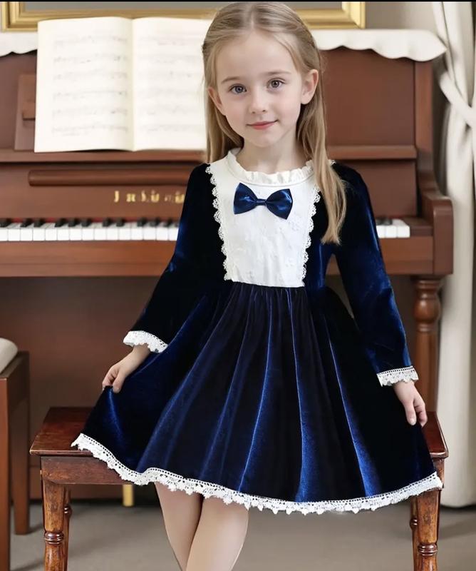 Елегантна сукня для дівчаток з рюшами та малим стійким коміром та тримерним бантом з мереживом, ідеальна для вечірок, щоденних виходів, казковим образам та принцесою для весни та осені.