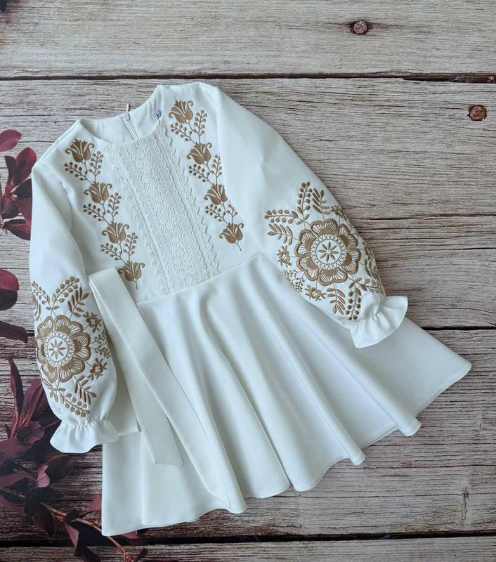 Відправка 6-7.08🥰 Дуже гарна сукня для дівчинки На рукавах і спереду вишивка Тканина - костюмка Пояс в комплекті. ГАРНА ЯКІСТЬ !!! РЕКОМЕНДУЮ!!! ПОВНОМІРНА Розміри 110-1 шт 116- продано 122- продано 128 - 1 шт 134- 1 шт 140 - 1 шт 146 - 2шт 152 - 2шт