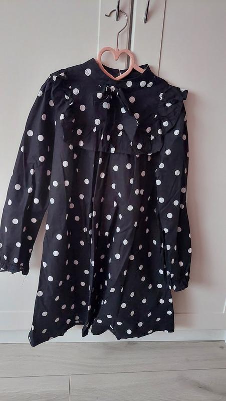 Плаття вільного крою, ззаду на ґудзиках, спереду є бантик, на рукавчиках резинки. Дуже зручне та стильне. Стиль Венздей. Ідеальний стан.