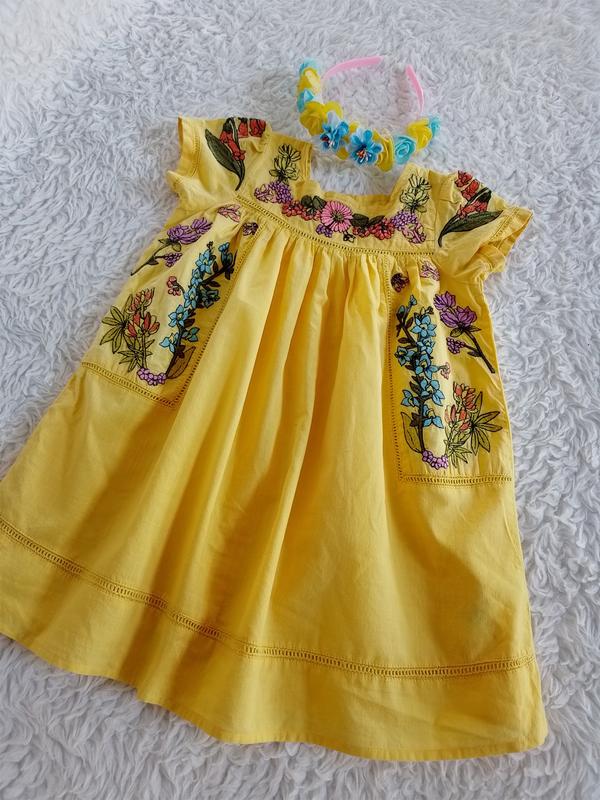Хлопковое платье с вышивкой Next. Свободный фасон. Короткий рукав. Размер 12-18 мес. Но мы одевали в 3.5 года. Обруч идет в комплекте. Длина 50 пог 30-32