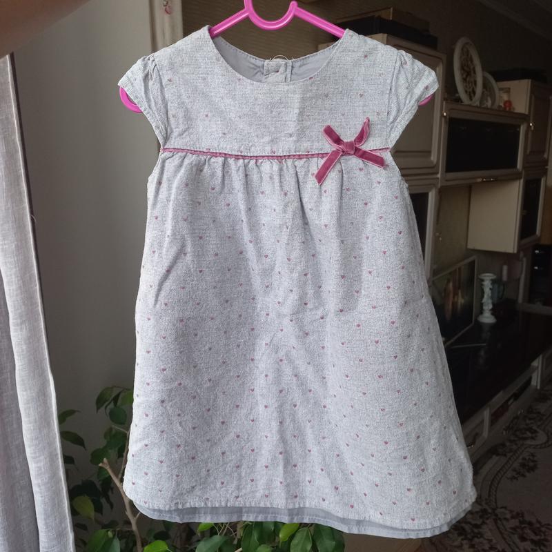 Плаття в чудовому стані. Дуже приємна тканина. На підкладці. Сіре в рожеве серце. На вік 2-3 роки, зріст 98 см