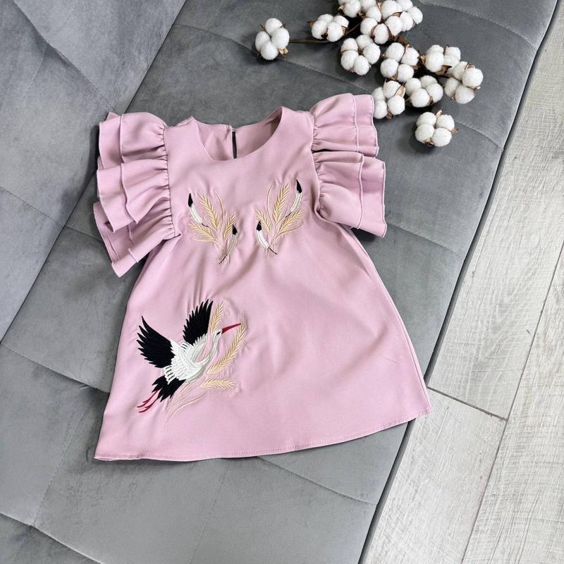 Інст babystore__clothing Тканина костюмка-Барбі. Не линяє, є гудзик позаду для зручності. На рукавах волани. Попереду гарна машинна вишивка лелеки та пшениці. Виробник Україна. Заміри: 110 - довж. 47 / напівобхват 32 116 - довж. 51 / напівобхват 33 122 - довж. 55 / напівобхват 34 128 - довж. 58 / напівобхват 36