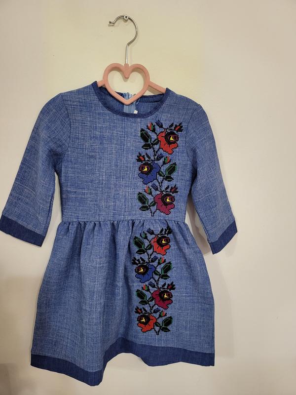 Сукня вышивка. Стан ідеальний, як нова. Розмір 122, але дуже маломірить. Буде на 116 довжина 58см рукав йде 2/3 – 29 см талія 27 від плеча до лінії пояса 25 Тканина натуральна, не тягнеться Дивіться також інші товари