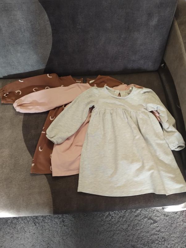 Сукні в садочок та на прогулянку. Бренд lefties. Коричнева у веселках та сіра трохи плотніші. Рожева тонша.Вік 2-3 роки. 98 см. Ціна вказана за три шт.