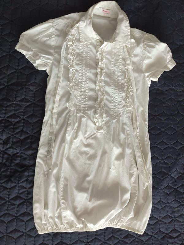 Сукня для дівчинки, біла з рюшами. Розмір: 9/134 Ріст: 134 Довжина: 75 см 1/2 ширини талії : 39 см 35% нейлон 62% бавовна 3% спандекс