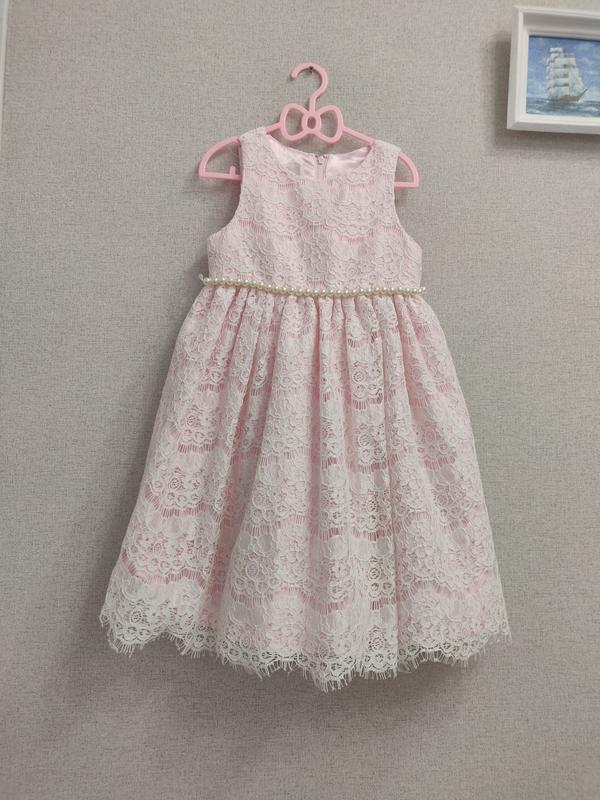 Сукня для дівчинки 4-5 років.Рожеве,з прикрасами із білих перлин. Довжина 63см,талія27