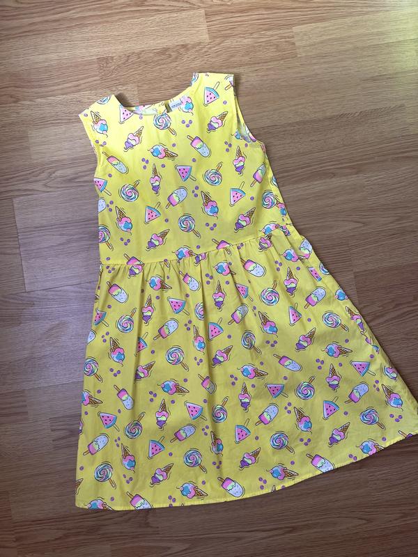 Яскрава сукня на зріст 140–146 см, фірма Waikiki. Натуральна бавовняна тканина, зовсім не парить. Стан — як нова. Колір дуже красивий та насичений. Позаду на ґудзиках. Замірі: • довжина повністю — 81 см • півобхват під грудьми — 37,5 см