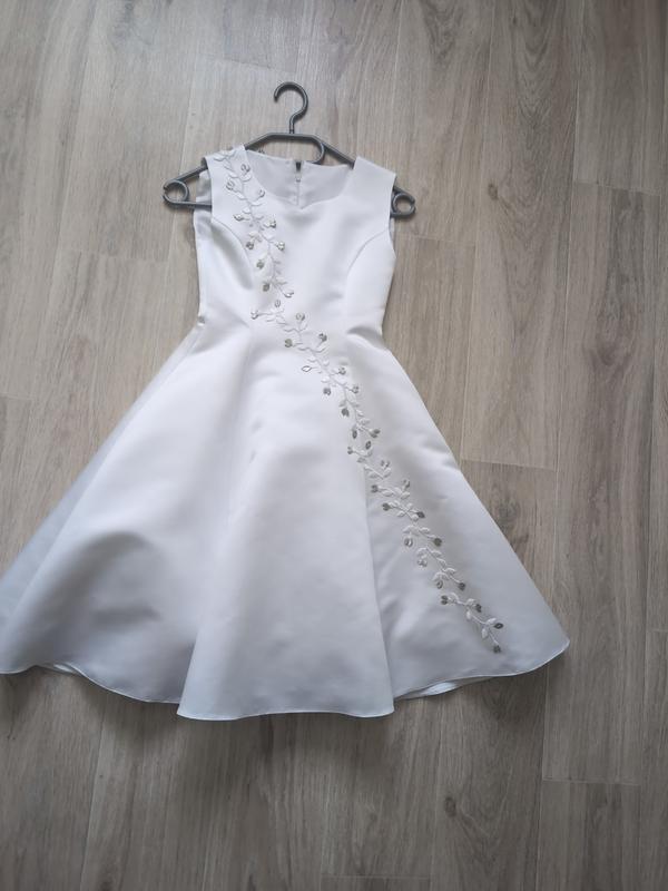 Сукня Kiabi 140 см 8 років стан нової сукні Підійде на будь-яке свято Тканина подібна на атлас дуже гарно сидить тримає форму Спідюпником гарно сидить на дитині вишукано Заміри довжина від плеча 86 см пів об'єм грудей 34 см Плечі 32 см Талія півооб'єм 30 см Стегна вільні широке Застібка позаду на змійці ол1
