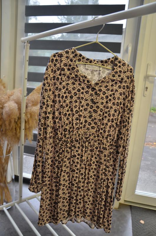 Сукня бежевого кольору у чорні квіточки, ідеально підходить як на свято ,так і на кожний день. Розмір 134 (9 років)