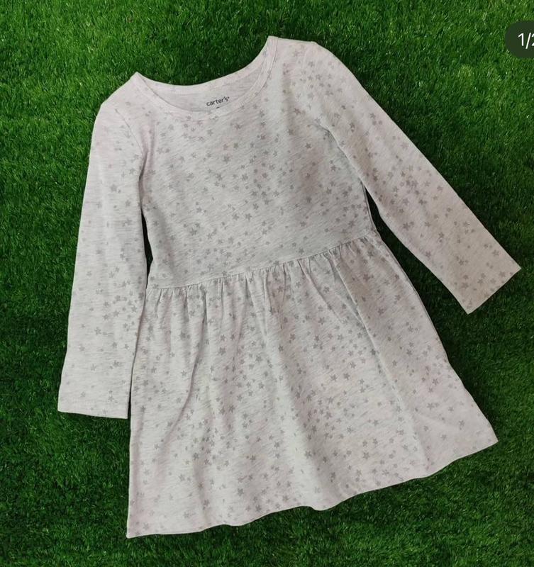 Зручна сукня з м'якого бавовняного трикотажу, злегка розкльошена спідниця. Світло-сірого кольору зі сріблястим леопардовим принтом. 100% бавовна.