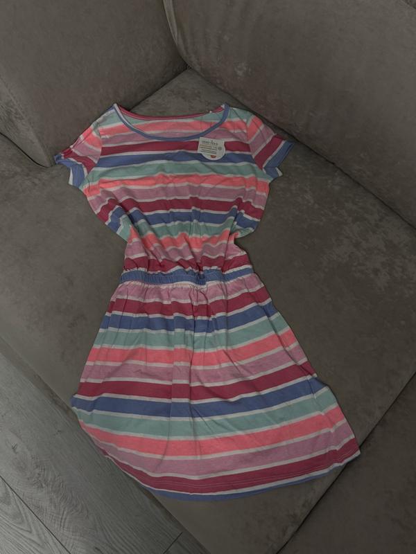Нова літня сукня для дівчинки 🌸 Легка, яскрава сукня у різнокольорову смужку — ідеальний вибір на літо! Підійде на зріст 146 см (вік приблизно 9–11 років). Чудово виглядає на сонці, зручна у носінні, приємна до тіла тканина. Підійде для прогулянок, відпочинку на пляжі або просто на кожен день 💛 Стильна, комфортна та створена для гарного настрою🎀