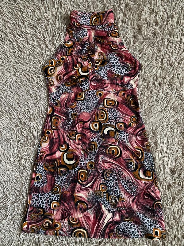 Трикотажна сукня , плечі відкриті, горловина стійка, без застібки, відрізне з під грудей Довжина 80 см ПОг 40 см Ширина під грудьми 35 см