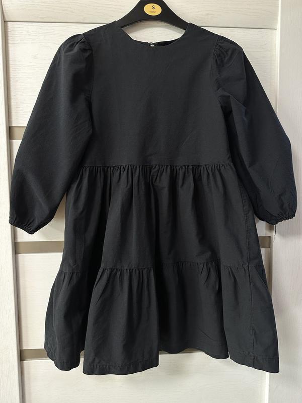 Стан гарний. Без дефектів. Колір чорний. Не насичений прям, але і не запраний точно. Достатньо гарний, щоб ходити до школи в ньому. Рукав цікавий, і не 3/4три і не довгий. Але, із-за того, що він як не "фонарік", дуже гармонічно все дивиться) Підійде на всі випадки життя. І до школи, і на свято, і на образ якийсь. Навіть на Хеллоуїн)) Дитині так робила, макіяж, обруч з рахунком і краса)) Під любе взуття, під колготки і лосіни. Класне плаття. Тканина не щільна і не прозора, середня, те що треба 😉 Розмір на фото. Орієнтуватися на заміри. На останньому фото показала, знизу, всередині, біла "плямка". Не помітна в носці.