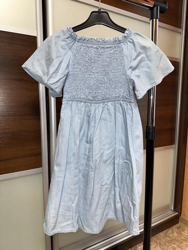 Легкое, красивое джинсовое платье для милой девочки, спинка и животик жатка, оч красиво и нарядно смотрится Размер 6/7 лет, можно дольше носить, в отличном состоянии Замеры длина от плеча 69 см, ширина подмышки 25 и тянется жатка, рукав 18