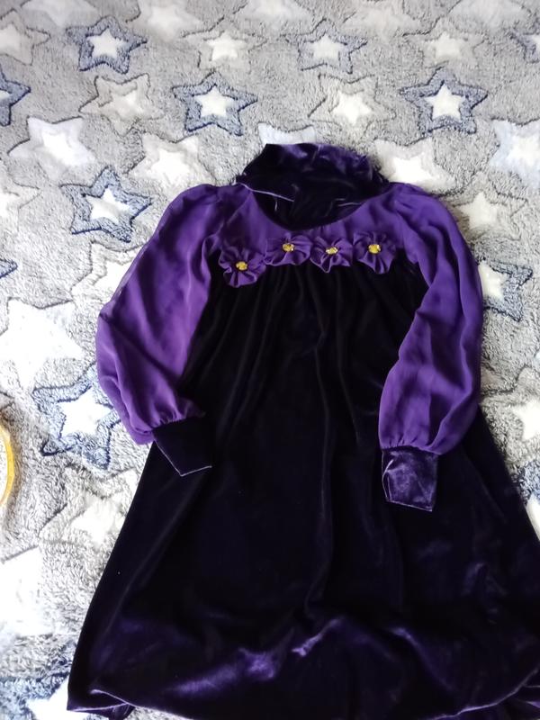 нарядна сукня для дівчинки в ідеальному стані вік приблизно 5-6 років. краще орієнтуватися по замірам довжина 68 см, плечі 29 см, рукав 54 см.